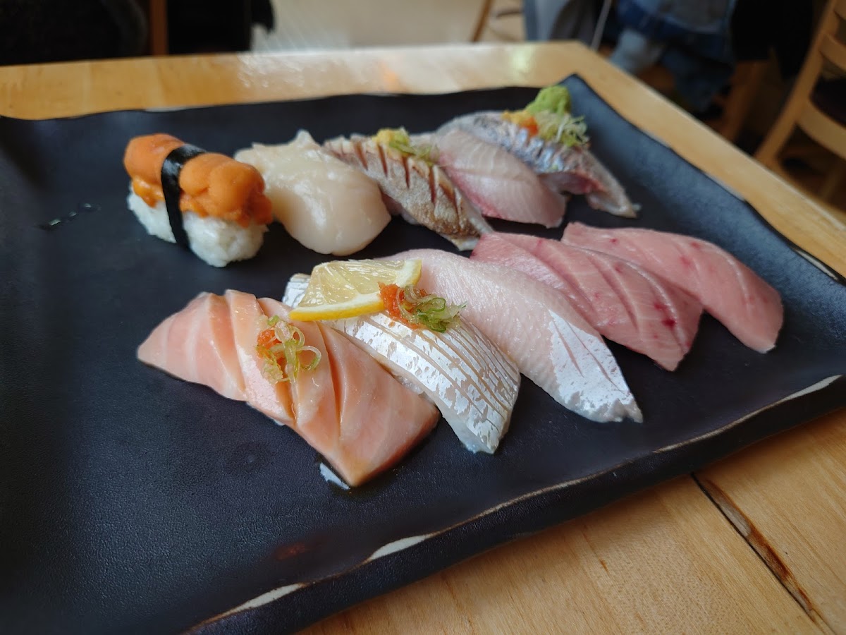 We love this place! If you want a traditional style Japanese sushi meal, this place is it. My wife and I dined in and ordered a chirashi bowl, chef’s sushi choice platter, and extra sushi pieces. The fish is fresh, the rice is seasoned, and the plating is thoughtful and just like I remember it in Japan. I was not expecting it at all, but the chef’s choice had TWO pieces of toro and a piece of uni. My wife and I love traditional sushi and have had a few omakase experiences. Even though this wasn’t it, it’s not far off, minus the catered service and multiple course experience an omakase experience brings. If you’re not into traditional sushi experiences, don’t come expecting fancy rolls covered in sauces. That’s not the vibe at this place. It’s intimate and meant for “old school” sushi vibes. The couple are definitely from Japan and have a very stoic vibe to them, but I’m used to it. You may even have to get their attention (Just like in Japan! I freakin love it lol). They turn people down at the door if you don’t have a reservation to keep the restaurant’s intimate atmosphere, but if you’re lucky someone might have cancelled and they may have an opening. Take it for what you will, but we love this place and will definitely be back! Just bummed we didn’t start coming earlier!